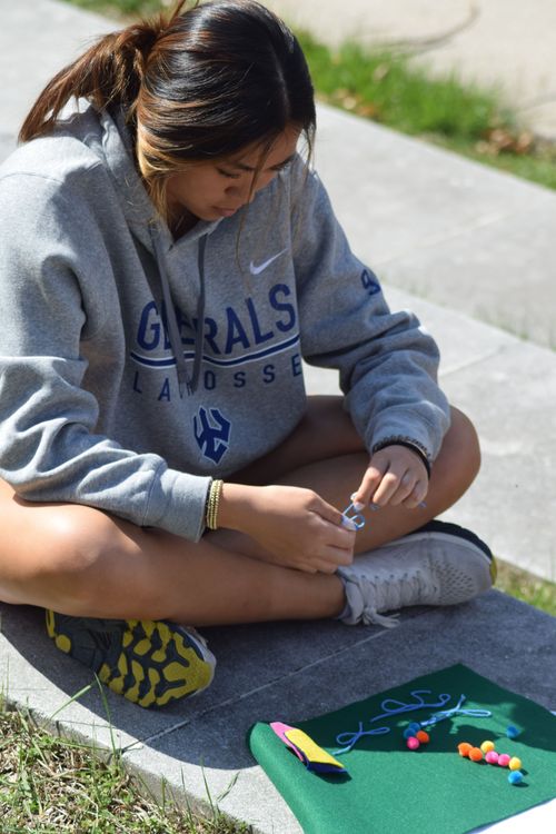 Students in Prof. Green's class held an arpillera workshop. Arpilleras, Spanish for burlap, are tapestries of colorful fabric scraps and stitching that tell stories. Working-class women in Chile used tapestries to tell their own stories of trauma they experienced while living under a dictatorship. Green's instructions to her students were simple: “My suggestion was for them to tell a story that they would want to tell.”